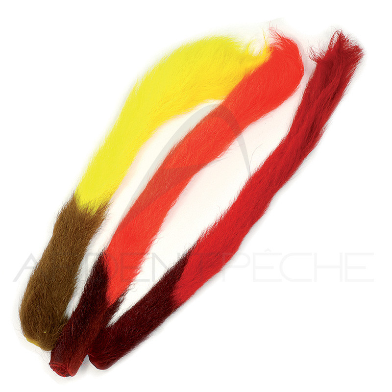 Poils fins légèrement ondulés. Les plus courts peuvent être utilisés pour réaliser des mouches sèches tandis que les plus longs sont montés sur les grands streamers (saumon, brochet, mer).