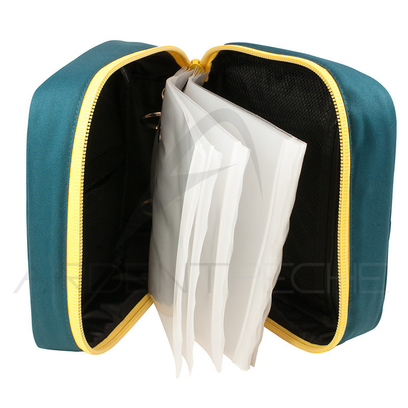 Une trousse pour ranger vos shooting heads munie de pochettes zippées détachables façon classeur et de poches ajourées pour ranger vos connecteurs et autres accessoires comme les bas de lignes versileaders et connecteurs.- 10 pochettes à lintérieur- Dimension de la valise 10.5cm x 22cm x 22cm- Dimension des pochettes 13 x 19cm