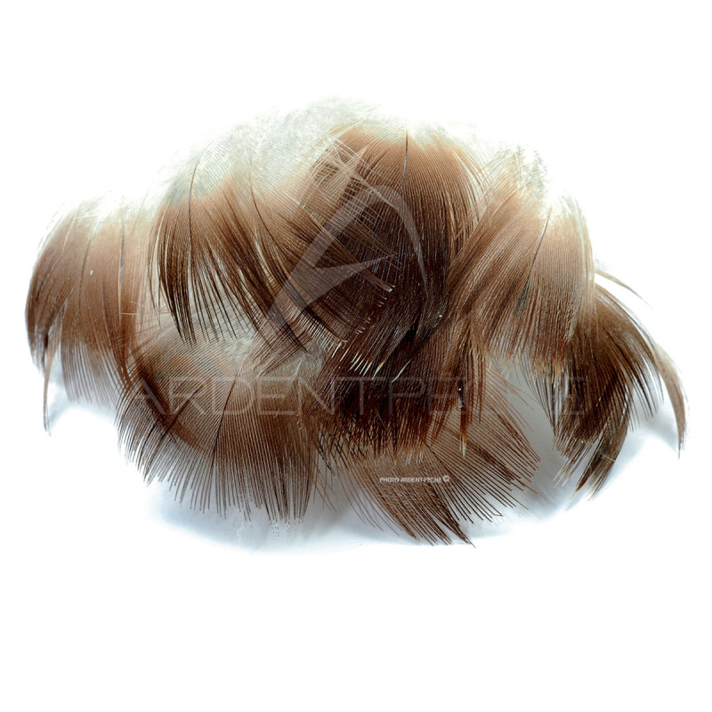 Plumes identiques aux plumes de poitrail de cane mais de couleur brunes. Pour faire des peutes marron foncées