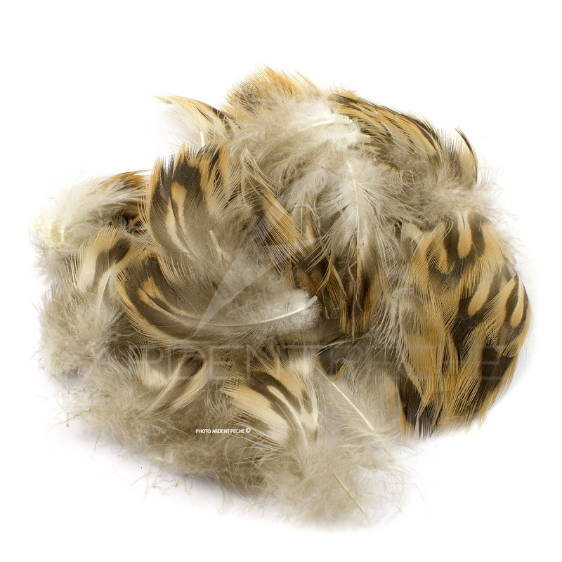 Les plumes de cane servent à faire des ailes de sedges, des hackles mous de noyées ou démergentes. Le sachet est un mixte de plumes de flanc et de poitrail de cane.Sachet de 2 g