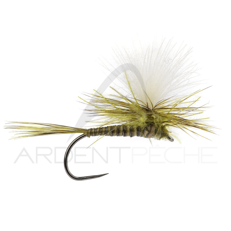 Imitation d'éphémère montée en parachute et intégrant du cul de canard et un corps fabriqué en quill pour plus de réalisme.Ce montage flotte "bas" sur l'eau tout en restant très visible et ne vrille bas les pointes les plus fines.