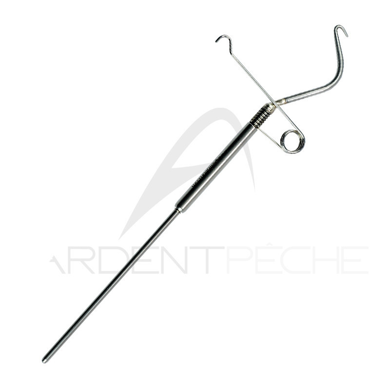 Le design spécial de ce finisseur autorise de très petits noeuds. Utile quand on monte de minuscules mouches. L' outil tourne sur lui-même pour réussir des têtes parfaites.
