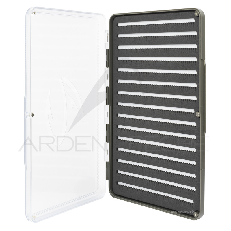 Boîtes de qualité supérieure, de grande capacité, fabriquées au Royaume-Uni. Disponible en rouge et en gris, cette boîte en polypropylène très résistant peut contenir jusqu’à 672 mouches, finement positionnées dans une mousse à fentes haute densité de 4 mm d’épaisseur. C’est la boîte de compétition idéale à glisser dans un sac de bateau.