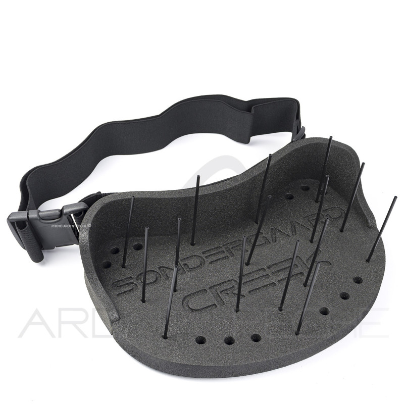 Ce panier très confortable et facile à utiliser est équipé de pointes flexibles qui empêchent la soie de s'emmêler. Une ceinture ajustable avec velcro le maintient solidement en place, tandis que l'ouverture située à l'avant permet de suivre efficacement votre ligne à mouche.