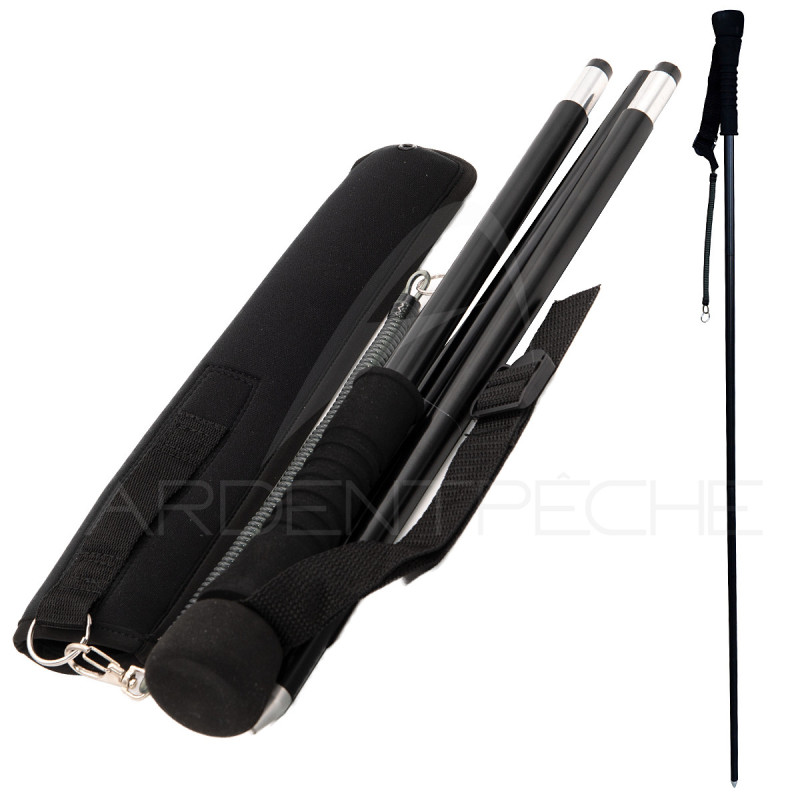Bâton de wading qui se déplie automatiquement lorsquon le sort de son étui. Il est relié à la ceinture par son cordon spirale. Accessoire très pratique pour se déplacer dans les rivières en toute sécurité.