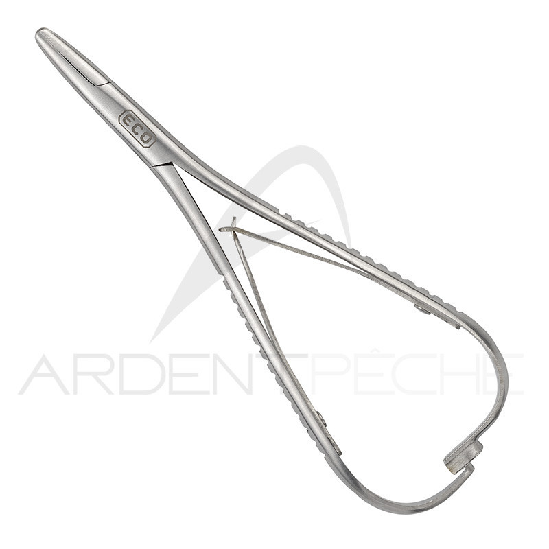 Petite pince à clamper multi usages indispensable dans votre gilet de pêche. Longueur : 143 mm
