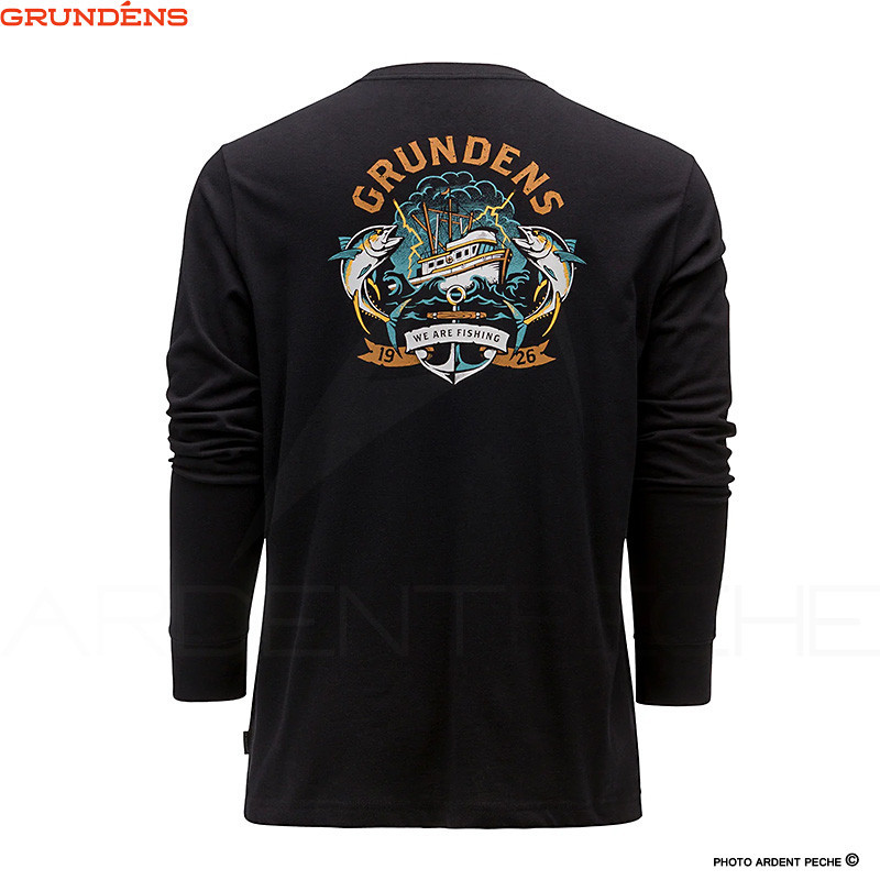 T-shirt à manches longues ultra doux avec logo Grundens pour porter fièrement votre amour de la pêche sur et hors de leau - 50% coton / 50% polyester