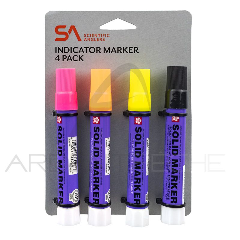 Les indicateurs jouent un rôle primordial dans les pêches modernes en nymphe, comme la nymphe tchèque, la nymphe à l’espagnole ou la nymphe à la française, et leur application à l’aide de stylos permet de les positionner avec précision exactement là où on le souhaite sur le bas de ligne.